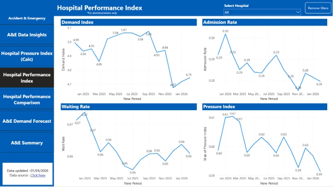 Emergency department in a health care organisation generate large volumes of operational data but often struggle to translate this data into actionable insights. A healthcare analytics dashboard was developed to visualise emergency department data in an intuitive and actionable format.