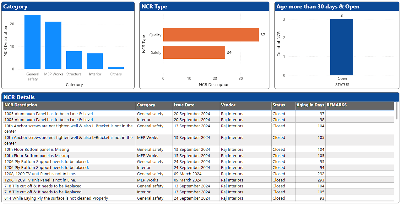 Non-Conformance Analysis is the systematic process of reviewing and analyzing non-conformances (NCRs) to identify root causes, trends, and impacts on quality, cost, and schedule, and to prevent recurrence. Non-conformance analysis strengthens the quality management system, improves compliance with standards, and ensures continuous improvement in project execution.