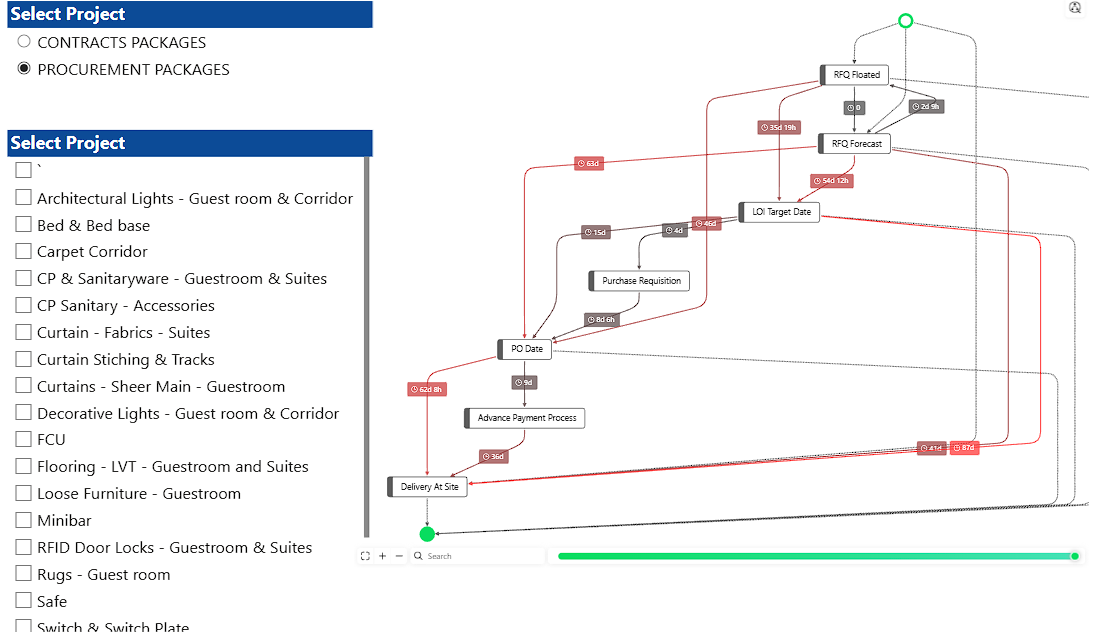 Procurement Analysis is the systematic evaluation of procurement activities—from tendering to delivery—to assess status, delays, trends, and risks affecting project cost and schedule. Procurement analysis highlights critical delays in documentation, contract placement, and delivery, posing a high risk to project schedule.